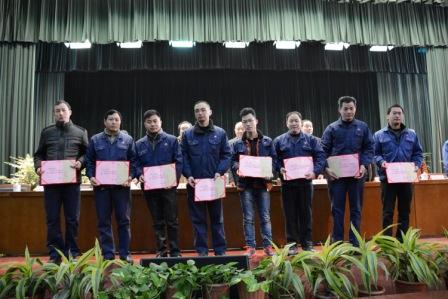 2016年2月3日上午,中華化工全體員工在公司大會堂參加了2016年第一次全體員工大會暨2015年度總結表彰大會。會上汪建根總經(jīng)理回顧總結了2015年度的工作情況,部署了2016年的重點工作;朱維君董事長宣讀2015年度優(yōu)秀班組與員工名單,并舉行了現(xiàn)場頒獎儀式;公司榮譽董事長朱貴法同志對公司2015年度的工作做出了肯定,并要求全體員工在新的一年里兢兢業(yè)業(yè)做好本職工作,控制成本,拓展銷售,奮力拼搏,確保順利完成2016年制定的各項任務目標,會議決定并宣布了2016年度繼續(xù)為全體員工增加工資并交納住房公積金。