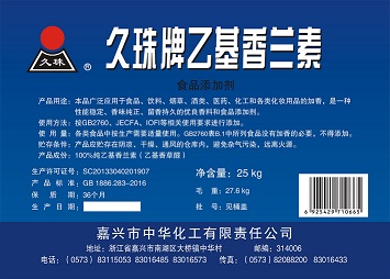 三、用途:乙基香蘭素可廣泛應用于食用、煙用與日用產品的加香,同時也是重要的精細化工產品,其香氣強度是甲基香蘭素的3~4倍。用作食品添加劑時,請按GB 2760要求使用。