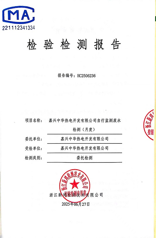 • 中華熱電6月廢水檢測(cè)報(bào)告