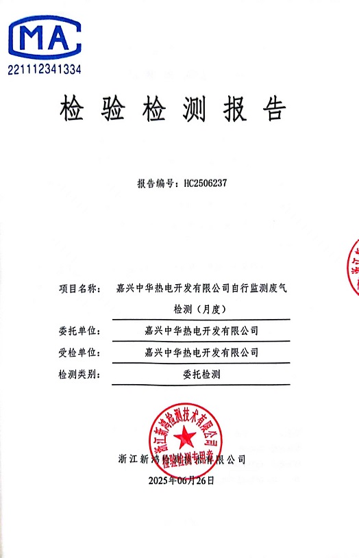 • 中華熱電6月廢氣檢測(cè)報(bào)告