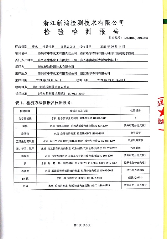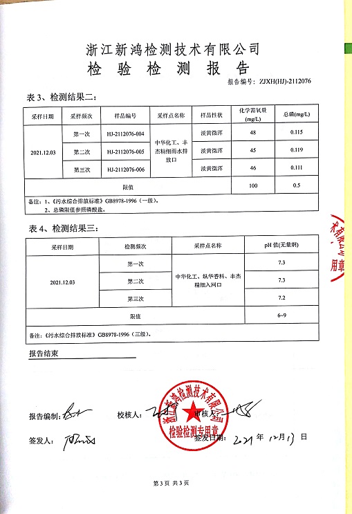 報告名稱:中華化工、縱華、豐杰3、4季度廢水檢測報告