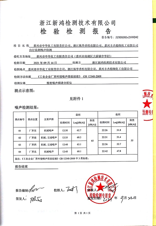 報告名稱:中華化工、縱華、豐杰3、4季度噪聲檢測報告