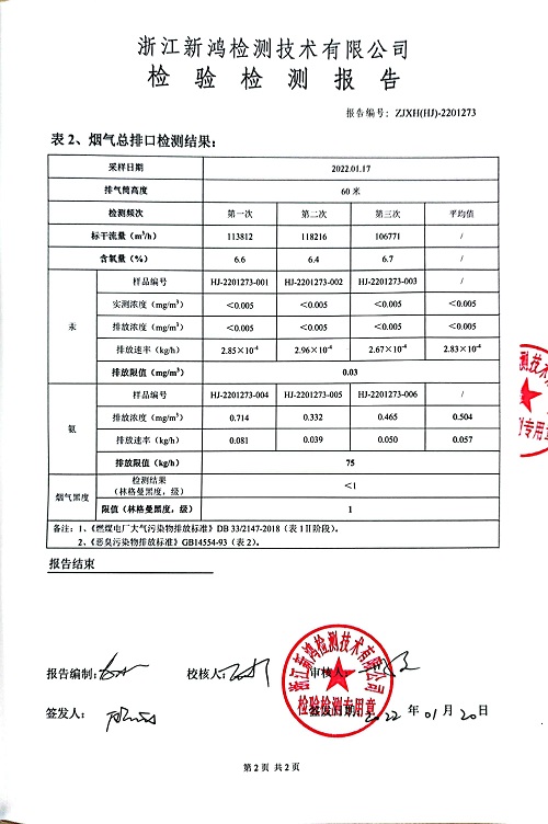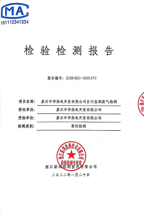 報告名稱:中華熱電2022.1月廢氣檢測報告