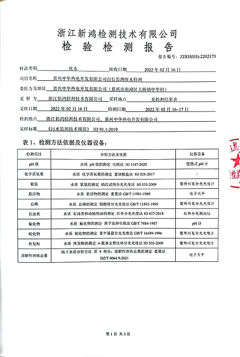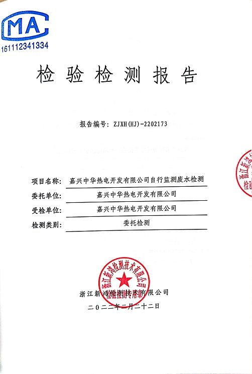報(bào)告名稱(chēng):中華熱電2022.2月廢水檢測(cè)報(bào)告
