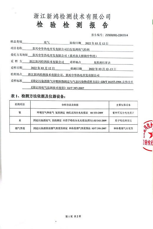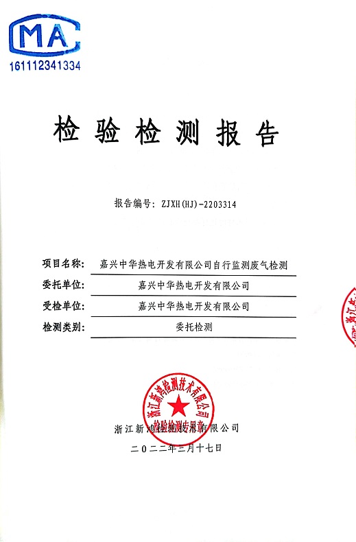 報告名稱:中華熱電2022.3月廢氣檢測報告