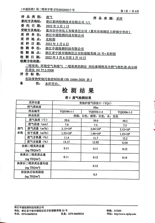 報(bào)告名稱:縱華上半年二噁英檢測(cè)報(bào)告