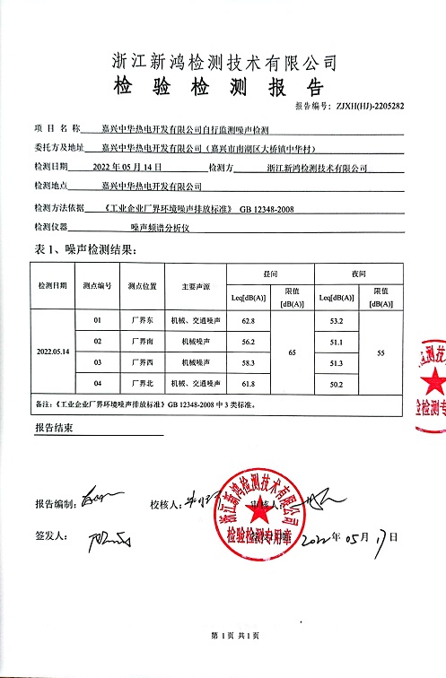 報(bào)告名稱(chēng):中華熱電2022.2季度噪聲檢測(cè)報(bào)告