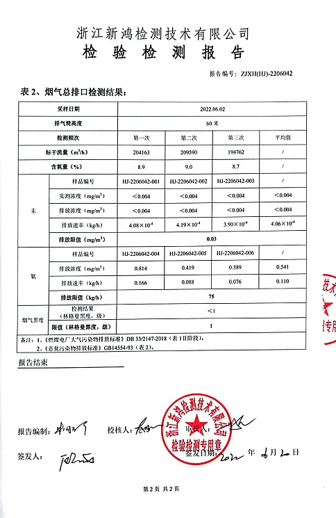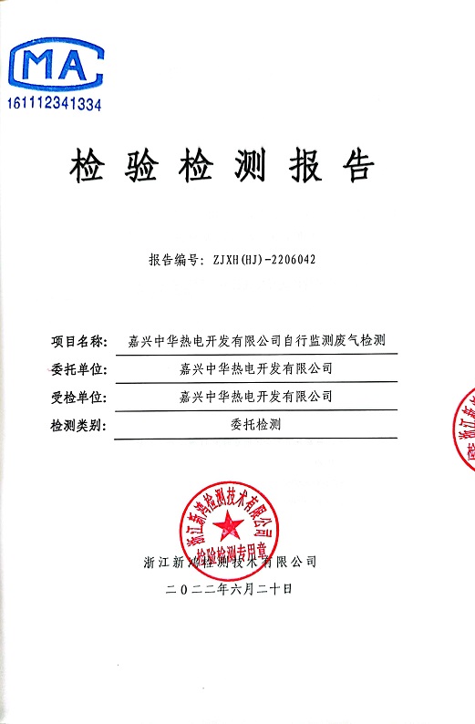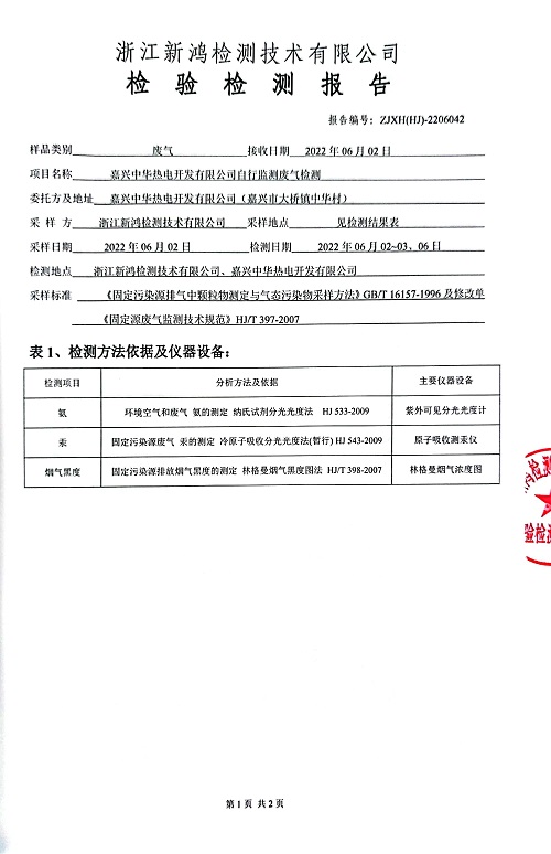 報告名稱:中華熱電2022年6月廢氣檢測報告