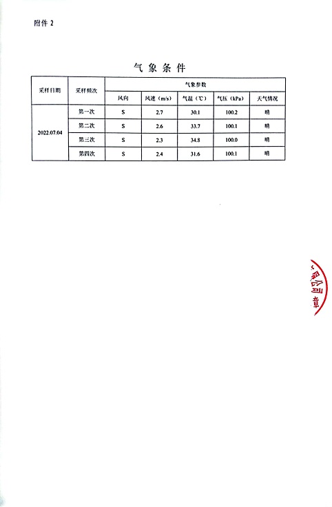 報告名稱:中華熱電2022年7月廢氣檢測報告