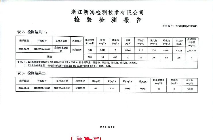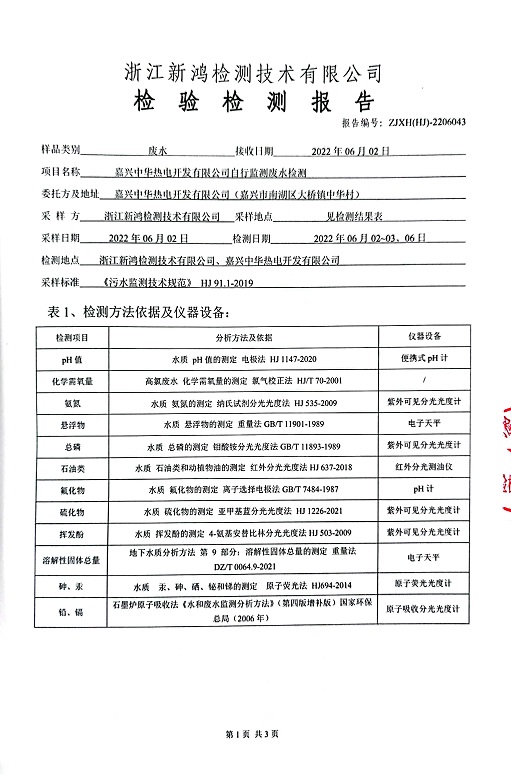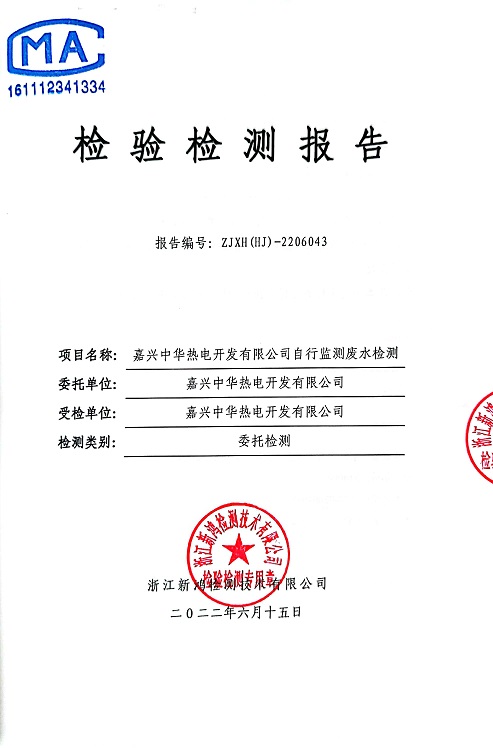 報(bào)告名稱:中華熱電2022年6月廢水檢測報(bào)告
