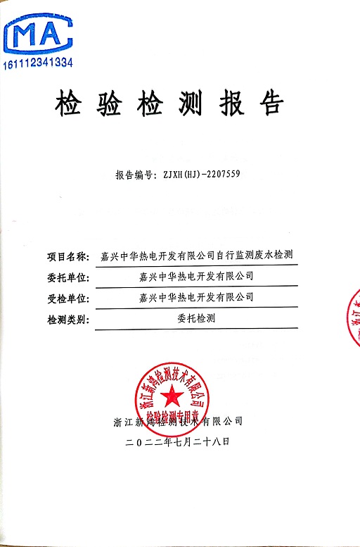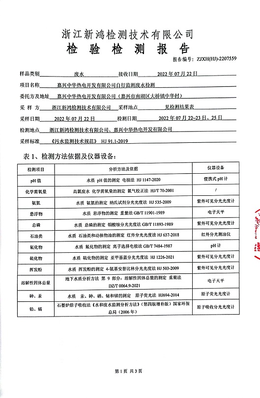報告名稱:中華熱電2022年7月廢水檢測報告