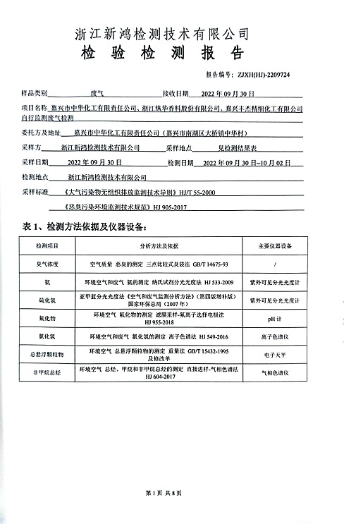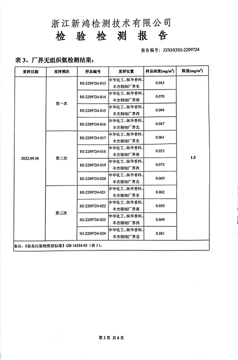 報告名稱:中華化工、縱華、豐杰2022年3季度廠界檢測報告