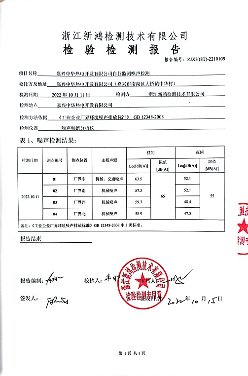 報(bào)告名稱:中華熱電2022年4季度噪聲檢測(cè)報(bào)告