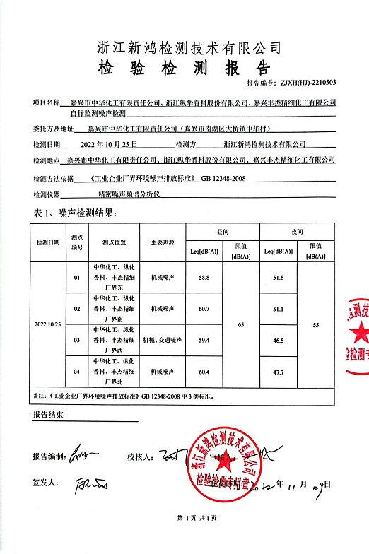 報(bào)告名稱(chēng):中華化工、縱華、豐杰2022年4季度噪聲檢測(cè)報(bào)告