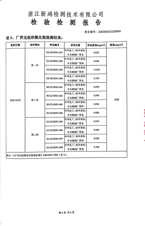 報告名稱:中華化工、縱華、豐杰2022年4季度廠界檢測報告