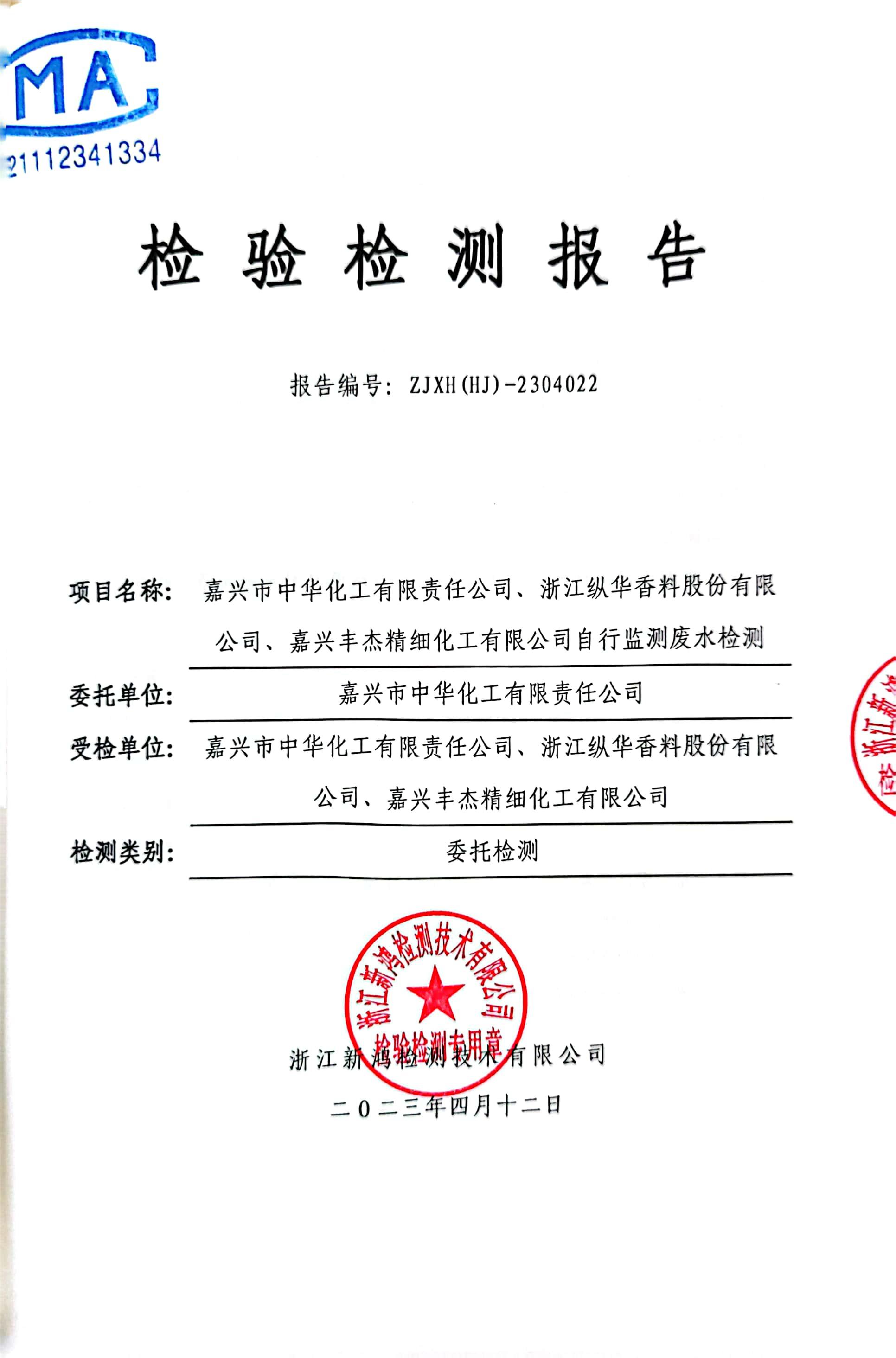 - 中華化工4季度檢測(cè)報(bào)告