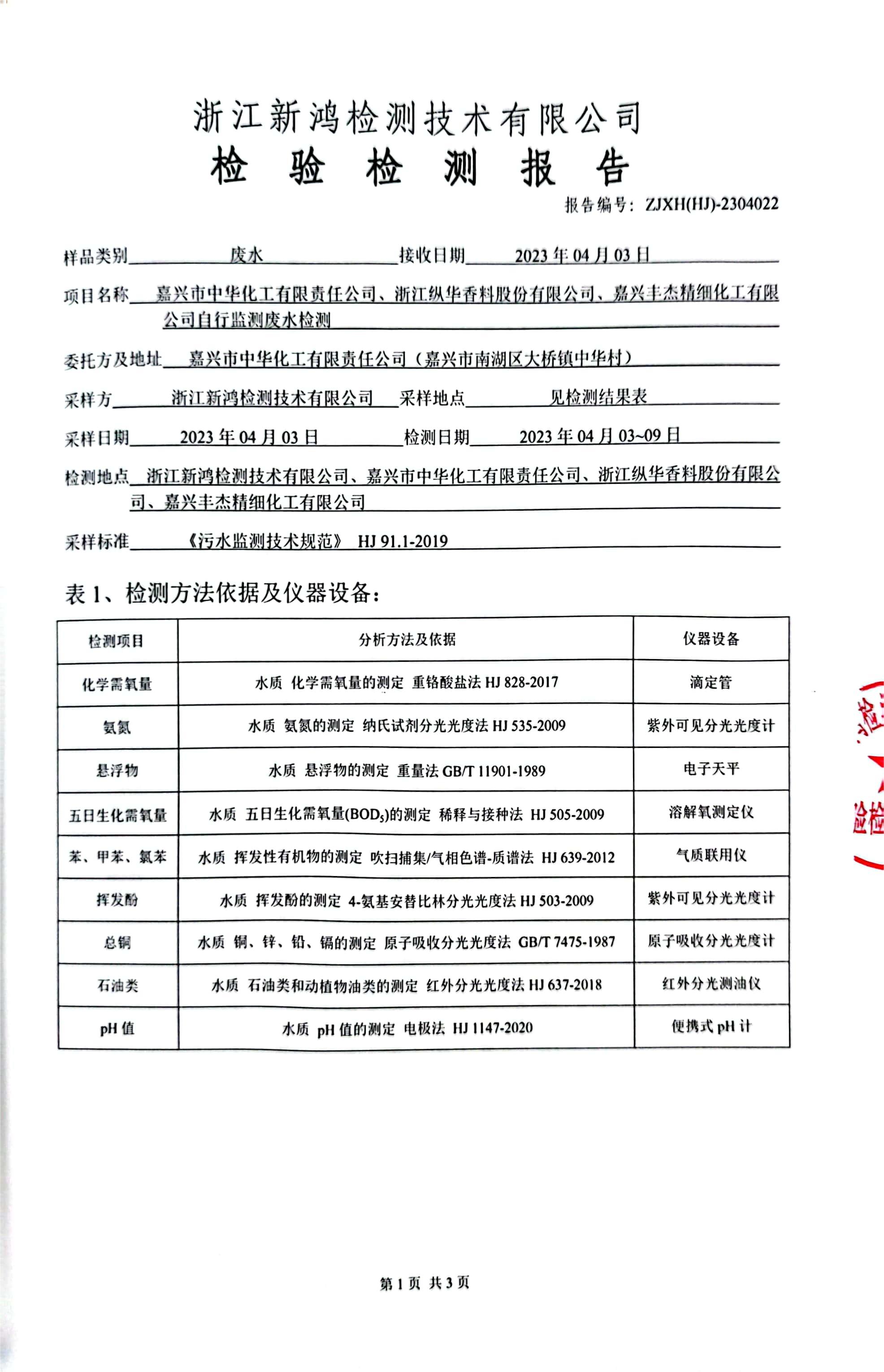 - 中華化工3季度廢水檢測(cè)報(bào)告