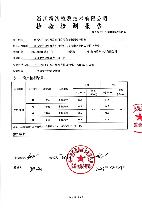 - 中華熱電3季度噪聲檢測(cè)報(bào)告
