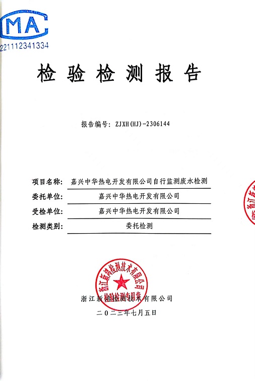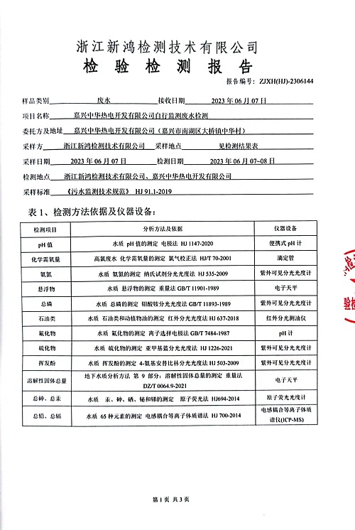 報(bào)告名稱:中華熱電2023.6月廢水檢測(cè)報(bào)告