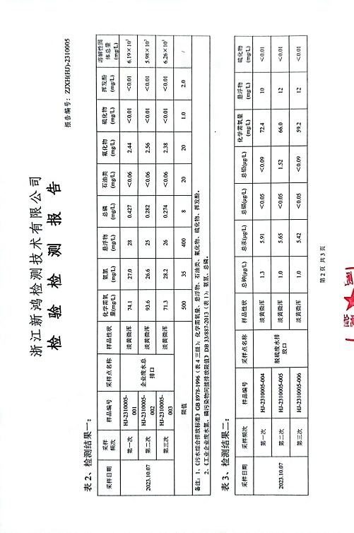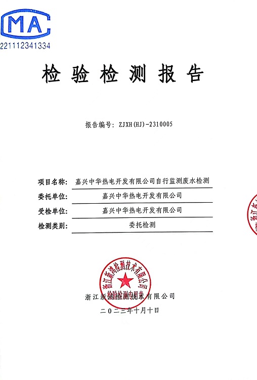 報(bào)告名稱:中華熱電2023.10月廢水檢測(cè)報(bào)告
