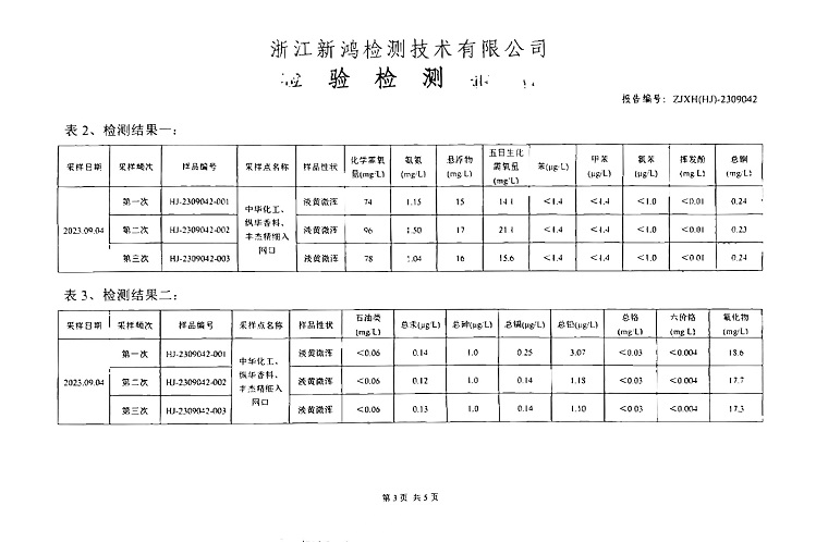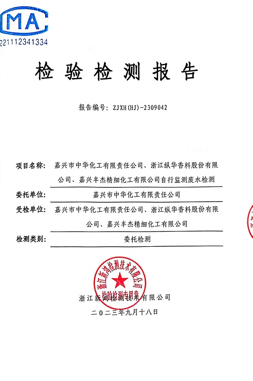 報(bào)告名稱:中華化工、縱華、豐杰2023.3季度廢水檢測(cè)報(bào)告