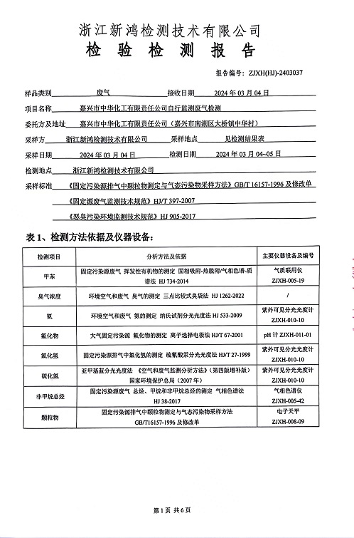 報(bào)告名稱:2024年中華化工1季度廢氣檢測報(bào)告