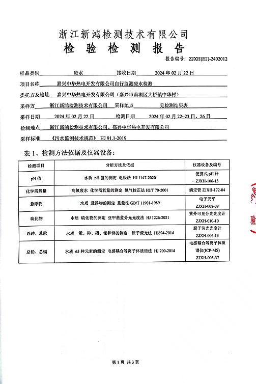 報(bào)告名稱(chēng):2024年中華熱電2月廢水檢測(cè)報(bào)告