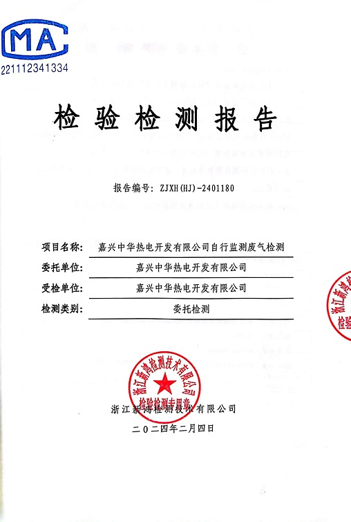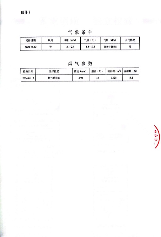 報告名稱:2024年中華熱電1月廢氣檢測報告