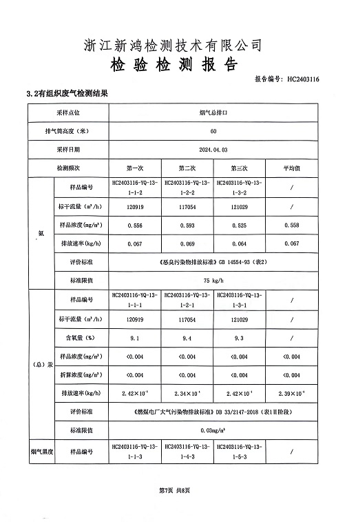 報告名稱:2024年中華熱電4月廢氣檢測報告