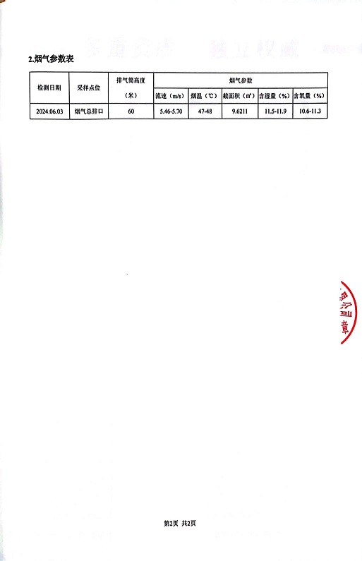 報告名稱:2024年中華熱電6月廢氣檢測報告