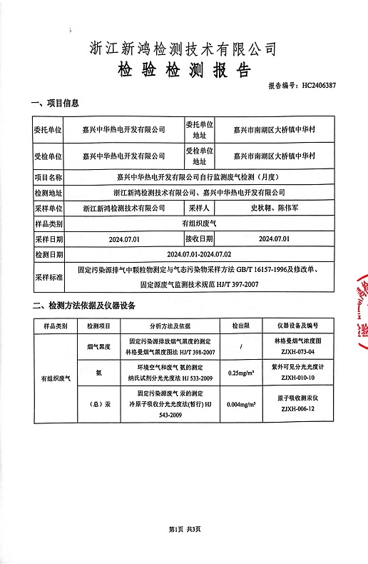 報(bào)告名稱:中華熱電7月廢氣檢測報(bào)告