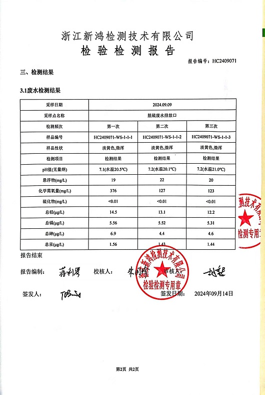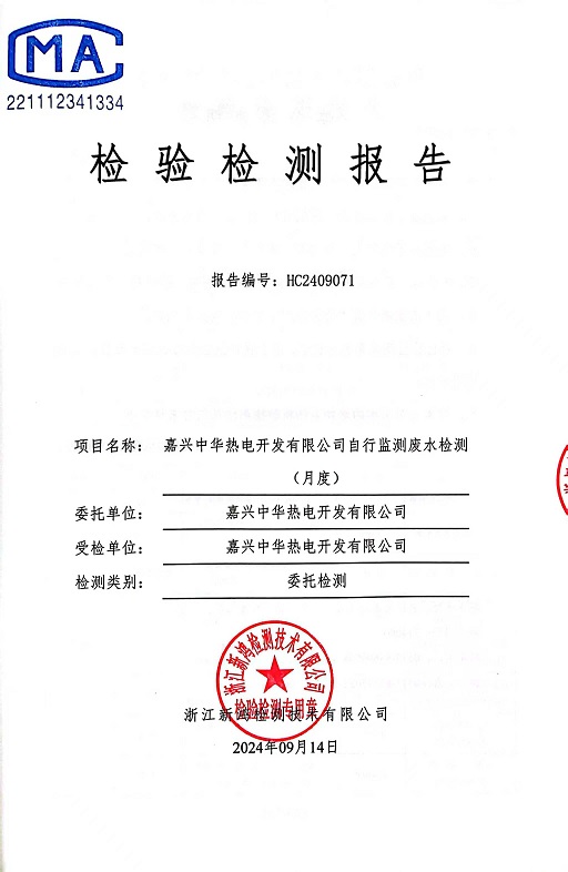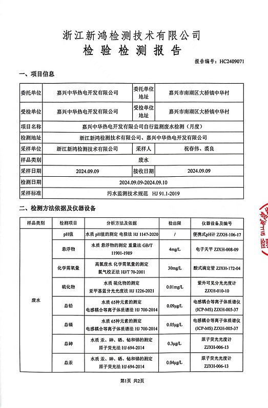 報告名稱:中華熱電9月廢水檢測報告