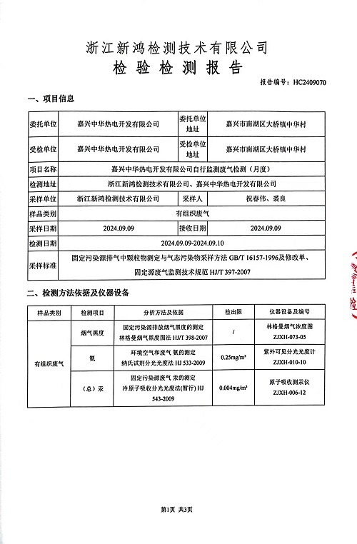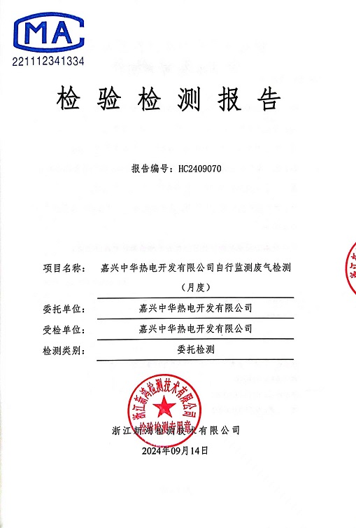 報告名稱:中華熱電9月廢氣檢測報告