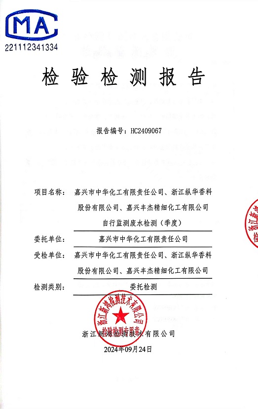 - 中華化工3季度廢水檢測(cè)報(bào)告
