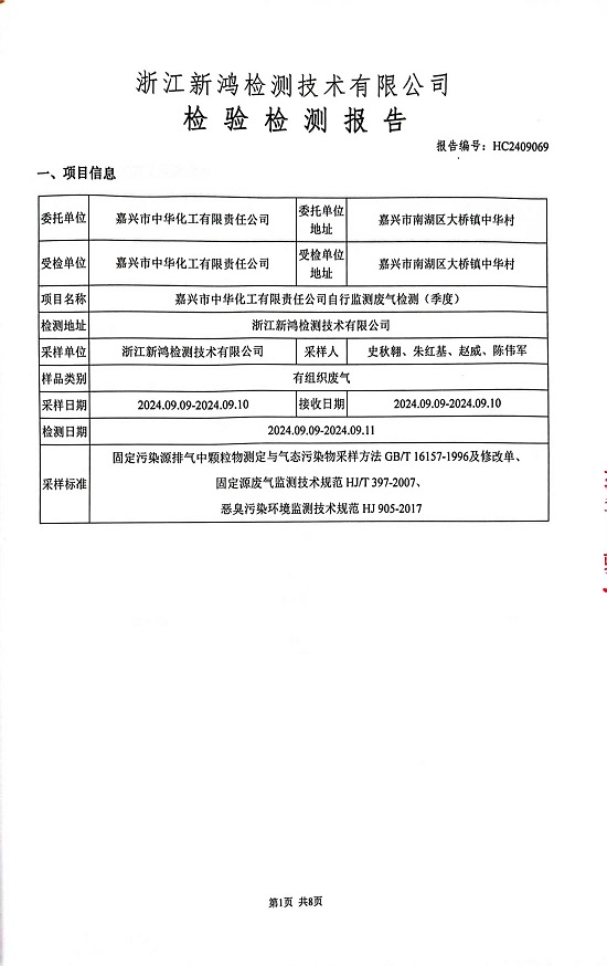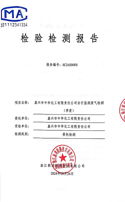 報(bào)告名稱:中華化工3季度廢氣檢測報(bào)告