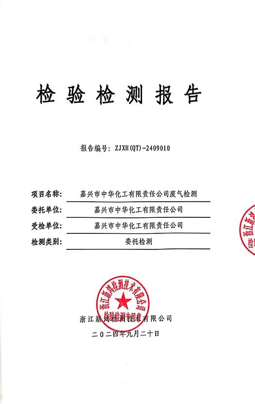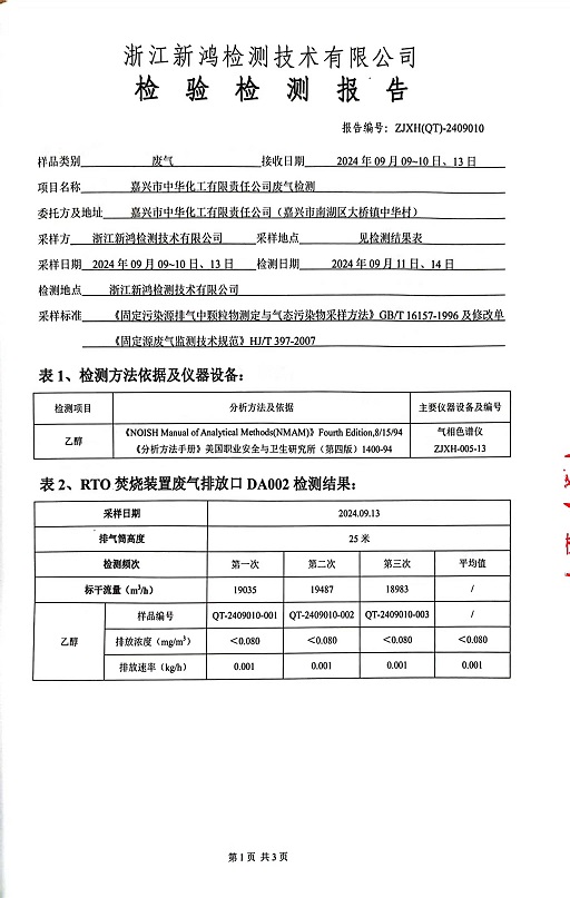 報(bào)告名稱:中華化工下半年乙醇檢測報(bào)告