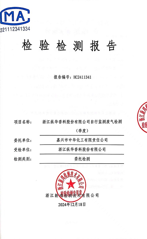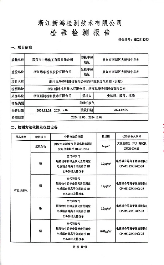 報(bào)告名稱:縱華香料12月廢氣檢測(cè)報(bào)告