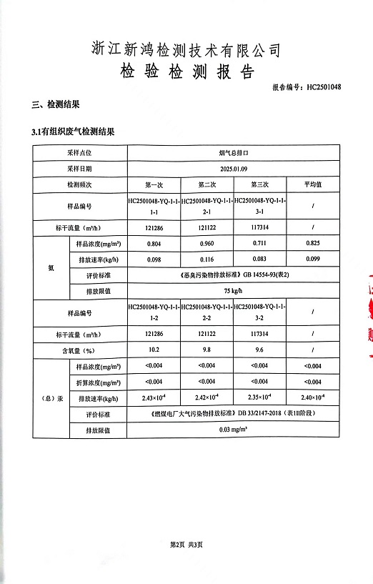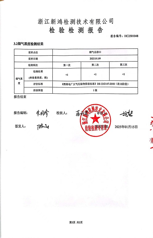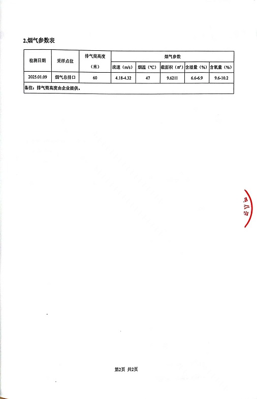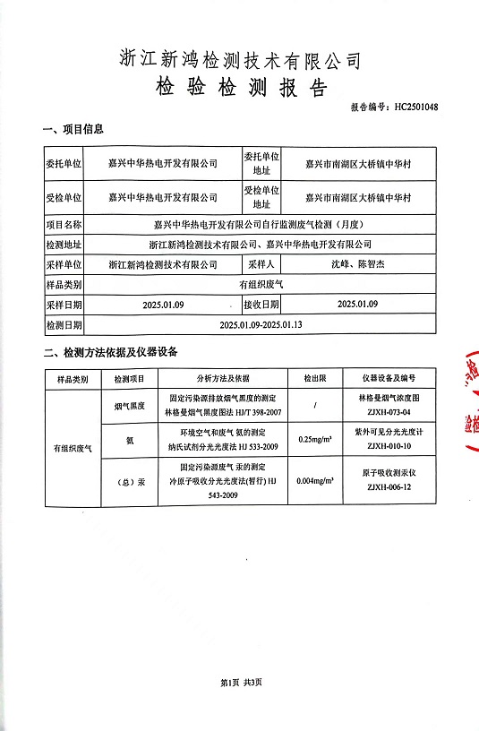 報告名稱:中華熱電2025年1月煙氣檢測報告