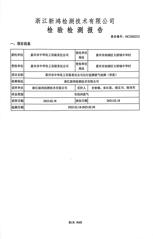 報(bào)告名稱:中華化工2025年1季度廢氣檢測報(bào)告