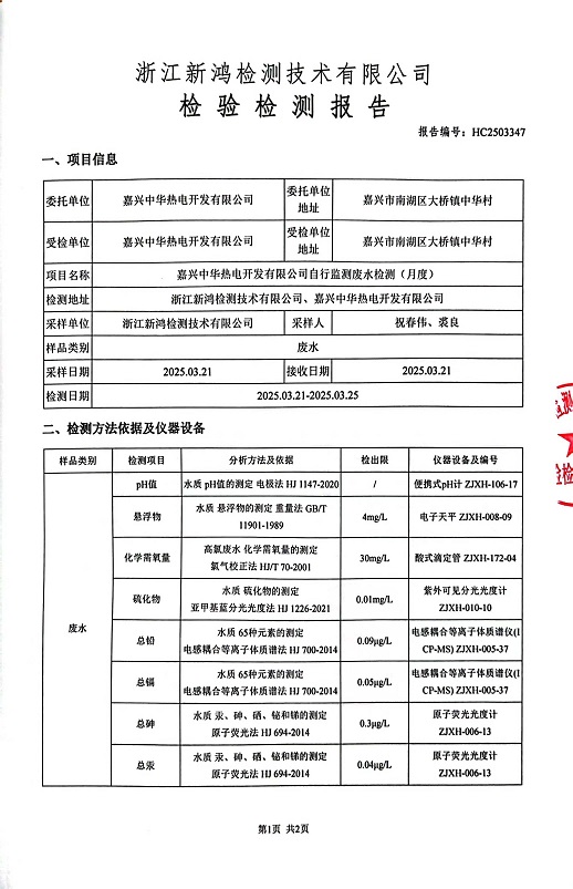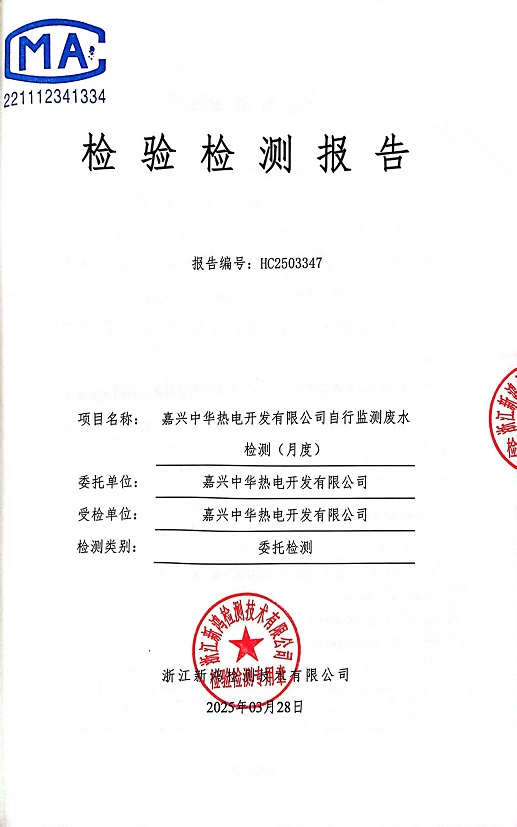 報(bào)告名稱(chēng):中華熱電3月廢水檢測(cè)報(bào)告