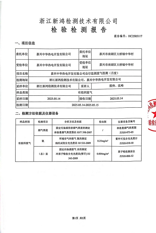 - 中華熱電7月廢氣檢測(cè)報(bào)告