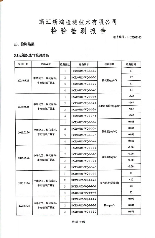 報(bào)告名稱:中華化工、縱華、豐杰2025年2季度廠界檢測(cè)報(bào)告