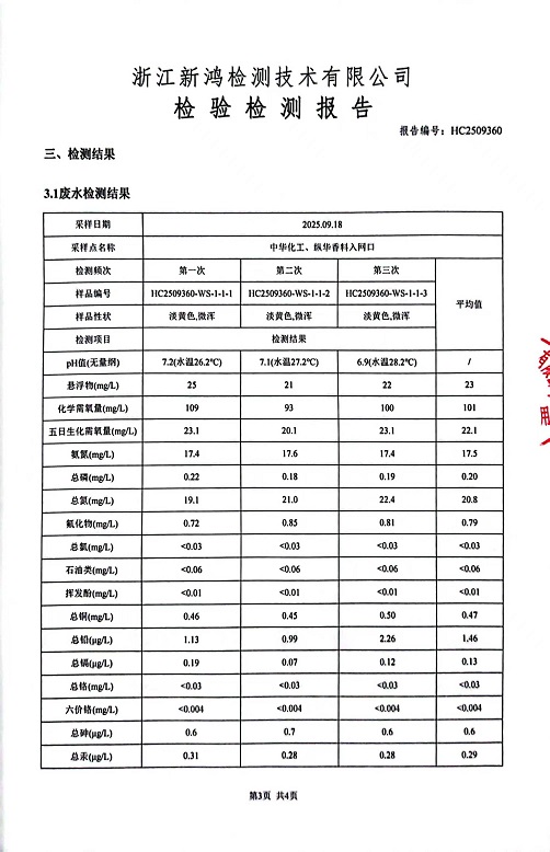 報告名稱:中華化工3季度廢水檢測報告