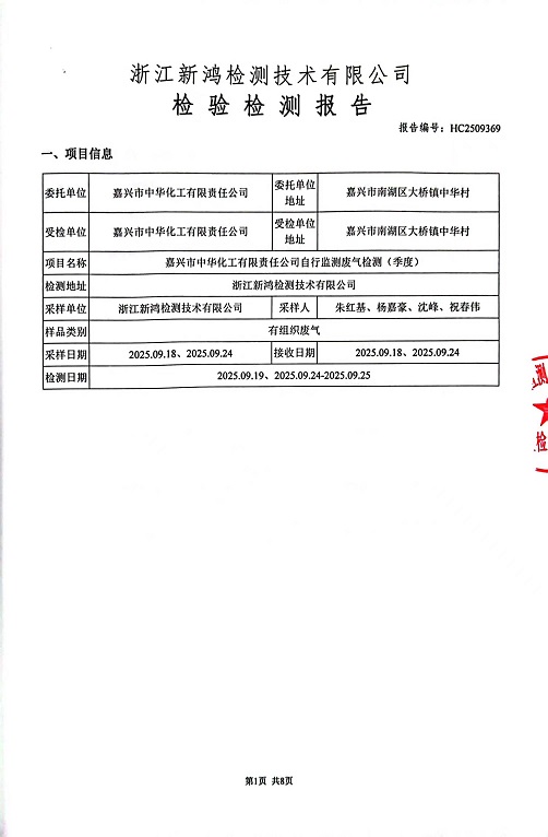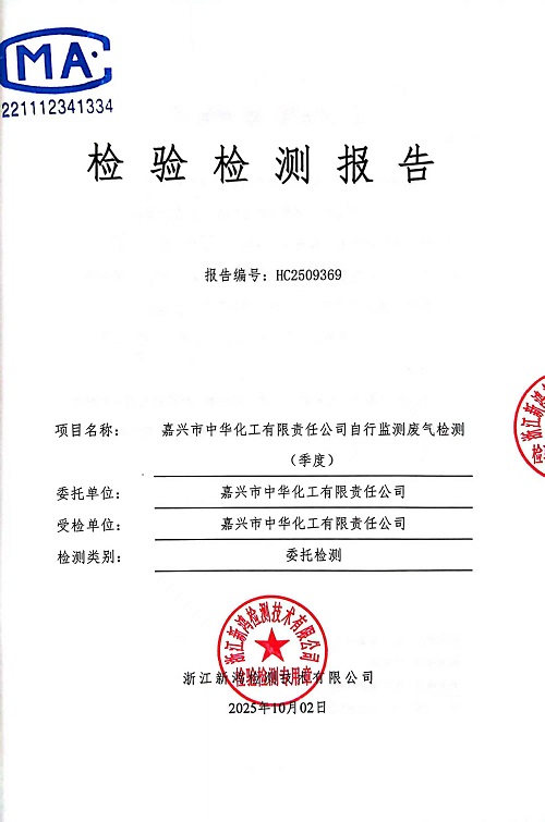 - 中華化工3季度廢氣檢測報(bào)告