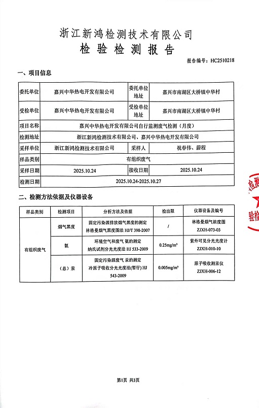- 中華熱電10月廢氣檢測報(bào)告