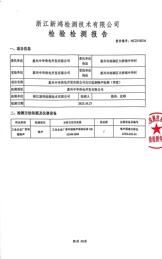 - 中華熱電3季度噪聲檢測(cè)報(bào)告