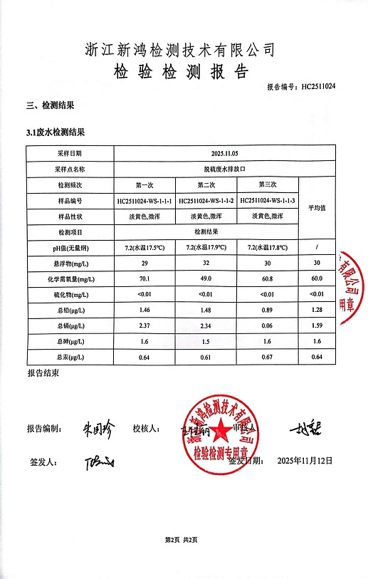 報告名稱:中華熱電11月廢水檢測報告